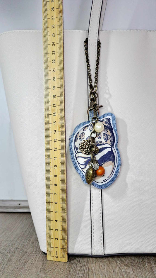 Add a touch of charm to your favorite bag with these handmade, one-of-a-kind bag accessories! I've crafted each one from upcycled denim and repurposed vintage necklaces, this piece is both adorable and eco-friendly.